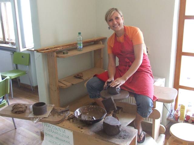 W dniach 21-25 lipca 2008r odbył się podstawowy kurs ceramiki przygotowany na potrzeby Agnieszki Sznurkowskiej z Olecka (na zdjęciu), która objęła prowadzenie pracowni ceramicznej w Warsztatach Terapii Zajęciowej w Olecku.
