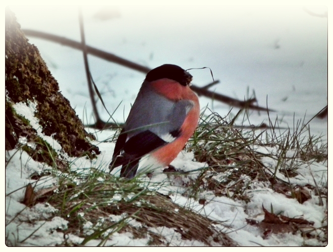 Zakochanych odwiedził fruwający przybysz z północy - czerwonobrzuchy gil.
